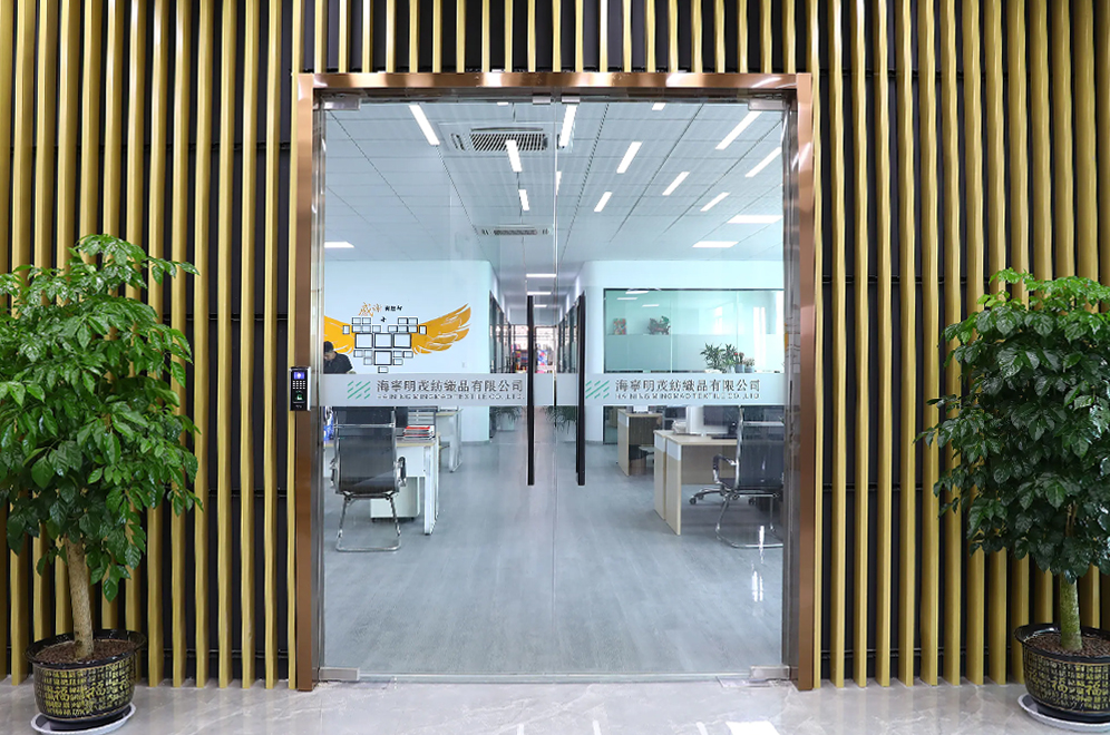 Táimid lonnaithe i Haining City, Zhejiang Province, ceann de na bunáiteanna tionsclaíocha cniotála cáiliúla sa tSín. Is é ár gcumas táirgthe bliantúil níos mó ná 2000 tonna. Déantar an fhabraic a onnmhairiú go Vítneam, an Chambóid, an Éigipt, an Afraic, Meiriceá, Ceanada, an tSile, etc.